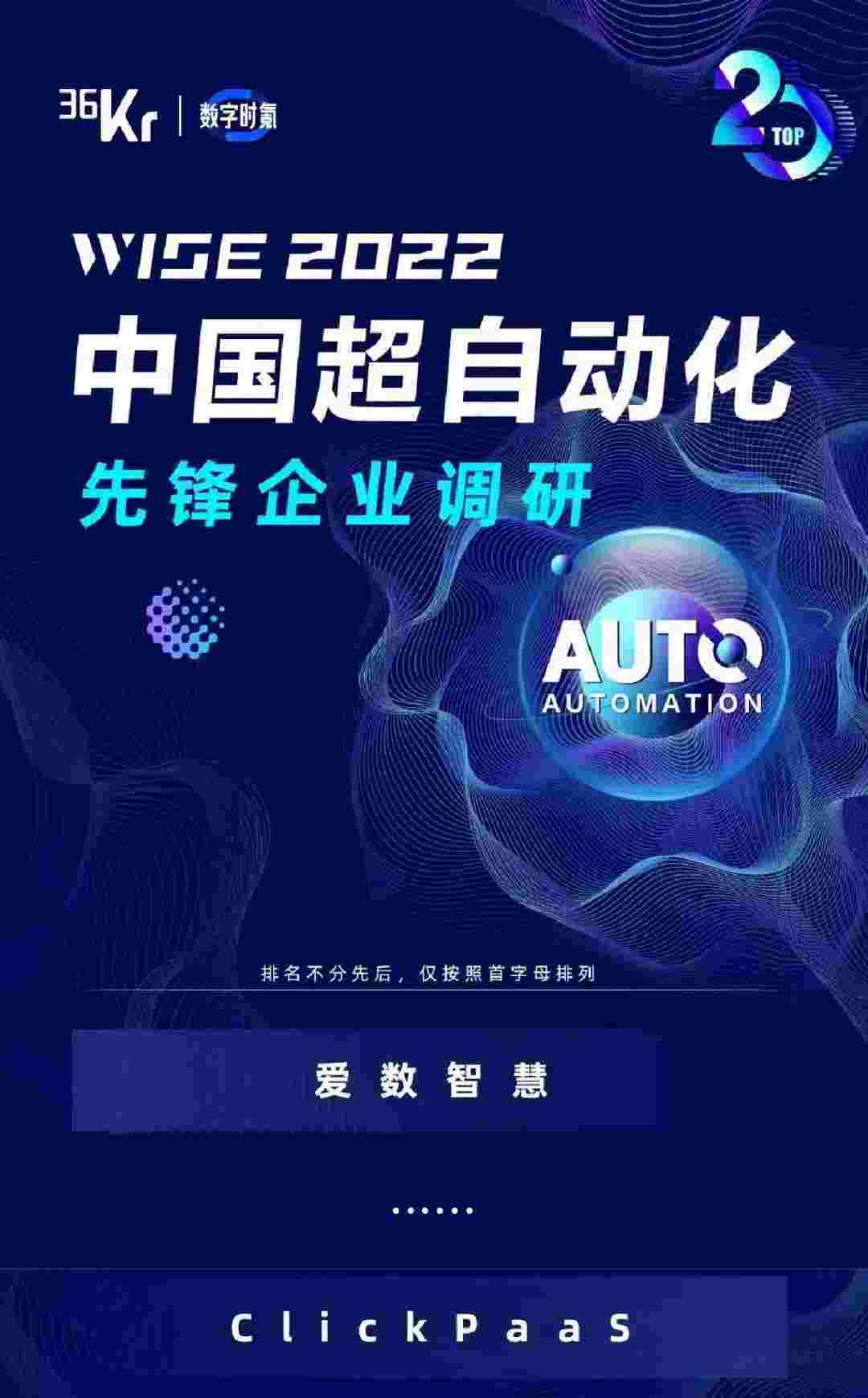 8月10日,,,,,,,,,,,,由36Kr主办的WISE 2022中国超自动化峰会在杭州成功举办。。。。华为钱包作为国内低代码PaaS平台的领军企业,,,,,,,,,凭借过硬的技术实力和优质的产品能力,,,,,,,,,,,,,在本次峰会中实力入选「2022年中国超自动化先锋企业」20强。。。。。。。