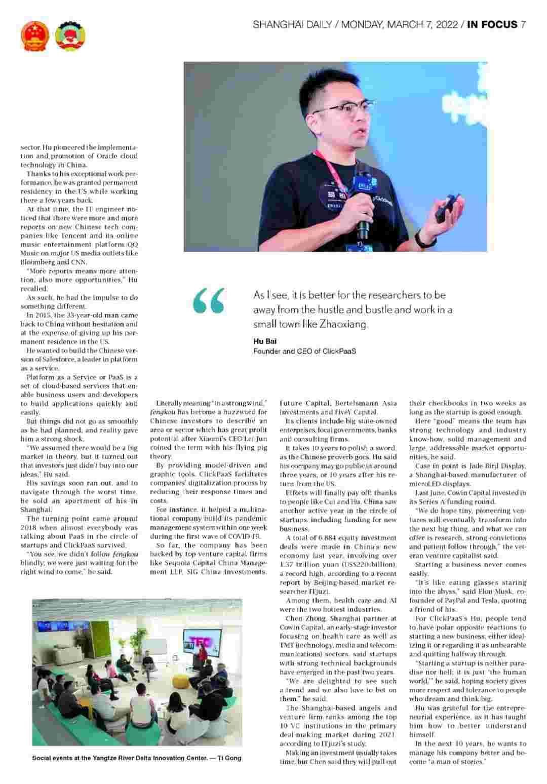 近日,,,,,,,,华为钱包创始人、、、、、、、、、CEO胡柏接受了《上海日报》采访,,,,,,关于自己当初为何选择创立华为钱包,,,,,,,,,又为何将公司落户于上海青浦,,,,,,,,,分享了其背后的故事。。。。。。。。。